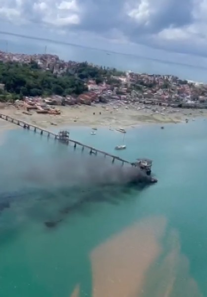 Um grande susto marcou a manhã desta segunda-feira (6) em Madre de Deus, Região Metropolitana de Salvador (RMS). Uma embarcação do tipo balsa, identificada como ‘Pai e Filho’, pegou fogo enquanto estava ancorada na região conhecida como Marezinha. O incêndio gerou uma densa coluna de fumaça escura visível a quilômetros de distância. Quatro pessoas estavam a bordo no momento, e um dos tripulantes sofreu ferimentos e precisou ser transferido para o Hospital Geral do Estado (HGE), em Salvador.