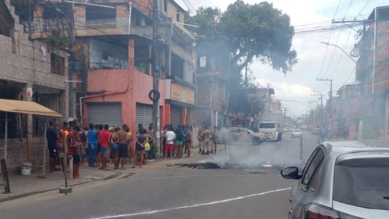 PROTESTO FECHA VIA PRINCIPAL NO BAIRRO DO URUGUAI APÓS MORTE DE JOVEM EM OPERAÇÃO POLICIAL